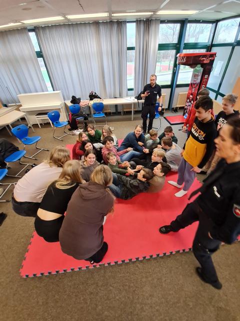 Nach fast 6-jähriger Pause findet an unser Schule wieder das Gewaltpräventionsprogramm „Wir sind stark“ statt. Das Programm mit den Schwerpunkten Zivilcourage und Anti-Gewalt beinhaltet auch viel Sozialtrainingseinheiten und wird von der Polizei und der Schule gemeinsam durchgeführt. Frau Schumann und Herr Trautmann von der Polizei und die Klasse 7R2