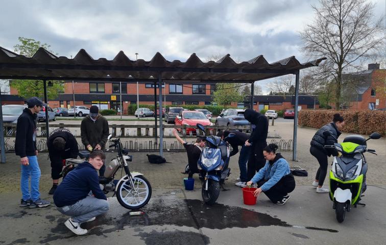 Am Montag haben die Schüler der Mofa-AG die Mofa für die neue Saison geputzt und fit gemacht. Bei dem guten Wetter wurde auch die Gelegenheit genutzt schon einmal ein paar Runden zu drehen. Allerdings müssen die Schüler jetzt büffeln, weil im Mai die theoretische Prüfung beim TÜV ansteht.
