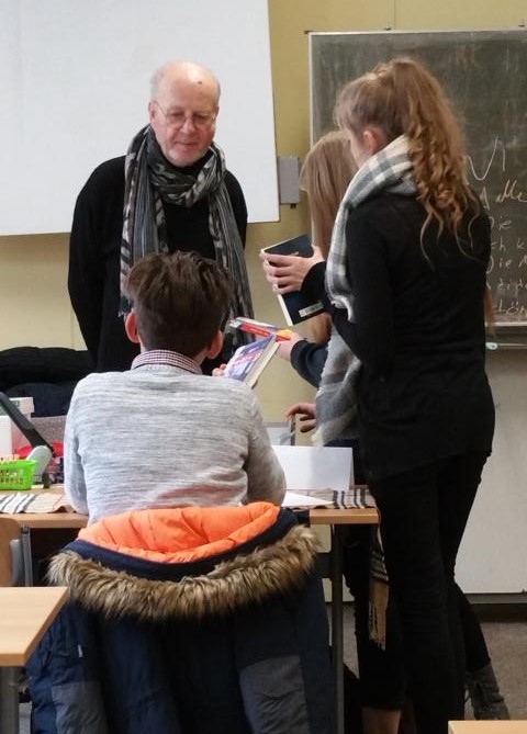 Schriftsteller H. Tondem mit Schülern der 8b Diese Frage stellte sich der 8b. Die Vorstellungen variierten zwischen „Wir gehen in den Werkraum und schreiben dort“ bis „Wir schreiben ein Buch.“ So richtig wusste es niemand und so warteten alle gespannt auf die zwei Tage Arbeit in der Schreibwerkstatt.