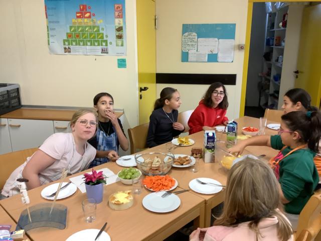 Heute feiert Koch-AG eine kleine Weihnachtsfeier mit Musik, Kakao, Ofenkäse und Schneemänner aus Marshmallows…..hmmm.lecker!