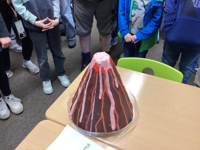 - Der Fachbereich Erdkunde präsentierte ein Deutschlandpuzzle, einen Kontinene-Legekreis für die Besucher. Sehr beliebt war auch die Simulation eines Vulkanausbruches.